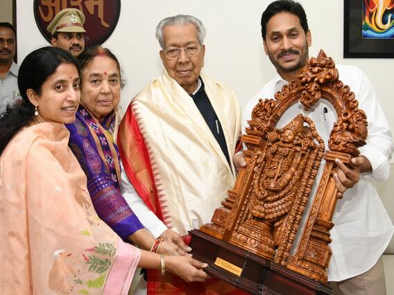 ఆంధ్రప్రదేశ్ ముఖ్యమంత్రి వైఎస్ జగన్ మోహన్ రెడ్డి దంపతులు గవర్నర్ బిశ్వభూషణ్ హరిచందన్ను కలిశారు. ఆయన ఏపీ నుంచి బదిలీపై ఛత్తీస్గఢ్కు వెళ్తున్న సంగతి తెలిసిందే. ఆంధ్రా గవర్నర్గా మూడున్నర సంవత్సరాల పాటు ఆయన పని చేసి, ఛత్తీస్గఢ్కు బదిలీపై వెళ్తున్నందున బిశ్వభూషణ్కు సీఎం జగన్ కృతజ్ఞతలు తెలిపారు. సీఎం జగన్తో పాటు ఆయన సతీమణి భారతి కూడా ఉన్నారు. సీఎం జగన్ బిశ్వభూషణ్కు వెంకటేశ్వరస్వామి ప్రతిమ బహూకరించగా, గవర్నర్ దంపతులు సీఎంకు శ్రీకృష్ణుడి విగ్రహాన్ని స్మారకంగా ఇచ్చారు. జగన్ సతీమణి వైఎస్ భారతి, గవర్నర్ భార్యకు చీరను బహూకరించారు.