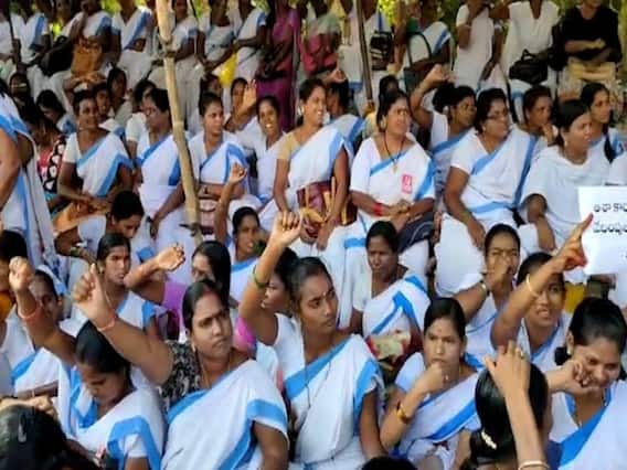 రాష్ట్ర వ్యాప్తంగా ఆశా వర్కర్లు(Asha Workers) కదంతొక్కారు. తమ సమస్యలు పరిష్కరించాలని కోరుతూ ఆందోళనలు చేపట్టారు. విశాఖ(Visakha) జిల్లా వైద్య ఆరోగ్య శాఖ అధికారికి వినతి పత్రం అందించేందుకు ప్రయత్నించిన ఆశా కార్యకర్తలను పోలీసులు ఎక్కడికక్కడ అడ్డుకున్నారు. విశాఖ జగదాంబ వద్ద సీఐటీయూ కార్యాలయంలో ఆశా వర్కర్స్ నగర గౌరవ అధ్యక్షురాలు మణితో సహా పలువురు కార్యకర్తలను పోలీసులు నిర్బంధించారు. సీఐటీయూ(CITU) కార్యాలయం బయట భారీగా పోలీసులను మోహరించారు. ఆశా వర్కర్లను డీఎంహెచ్ఓ(DMHO) కార్యాలయానికి వెళ్లకుండా పోలీసులు అడ్డుకోవడంతో కార్యకర్తలు పోలీసులతో వాగ్వాదానికి దిగారు. పరిస్థితిని అదుపు చేసేందుకు ఆశా వర్కర్లను పోలీసులు అరెస్టు చేశారు. ఆశా వర్కర్ల నగర అధ్యక్షురాలు మణి మాట్లాడుతూ తమ సమస్యలు పరిష్కరించాలని కోరుతూ వినతిపత్రం ఇవ్వడానికి వెళ్లే కార్యకర్తలను అరెస్టులు చేయడం దారుణం అన్నారు. పాదయాత్ర సమయంలో సీఎం జగన్(CM Jagan) ఇచ్చిన హామీలను విస్మరించారన్నారు. చంద్రబాబుకు మించి వైసీపీ ప్రభుత్వం(Ysrcp Govt) తమను నిర్భదిస్తోందని అన్నారు. ఇది ప్రజాస్వామ్యాన్ని అణచివేసే చర్య అని అన్నారు