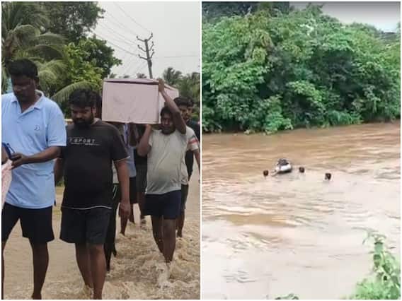 కోనసీమ జిల్లా లంక గ్రామాల్లో వరద ప్రభావం తగ్గలేదు. చనిపోయిన వ్యక్తికి అంత్యక్రియలు చేసేందుకు బంధువులు నానాకష్టాలు పడుతున్నారు. అయినవిల్లి మండలం అయినవిల్లి లంకకు చెందిన తిరుకోటి నాగవేణి (50) అనారోగ్యంతో మృతి చెందారు. అయినవిల్లి లంక వరదలో చిక్కుకుపోవడంతో అంత్యక్రియలు చేసేందుకు బంధువులు అవస్థలు పడుతున్నారు. వరద నీటిలో నుండి వేరే ప్రాంతానికి తీసుకెళ్లిన బంధువులు అక్కడ అంతిమ సంస్కారాలు చేశారు.