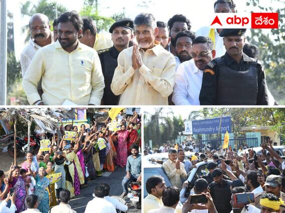 తూర్పుగోదావరి జిల్లా పర్యటనకు వచ్చిన చంద్రబాబుకు అడుగడుగునా ఘన స్వాగతం లభించింది. క్రేన్ ద్వారా ప్రతి సెంటరులో భారీ గజమాలలతో చంద్రబాబుకు స్వాగతం పలికారు. మధురపూడి ఎయిర్పోర్టు నుంచి బూరుగుపూడి, కోరుకొండ మీదుగా గుమ్మళ్లదొడ్డికి చేరుకున్న చంద్రబాబుకు మహిళలు హారతులు పట్టారు. మూడు రోజుల పాటు మూడు నియోజకవర్గాల్లో రోడ్ షోలు, బహిరంగ సభలతో ప్రజల్లోకి వెళ్లనున్నారు.