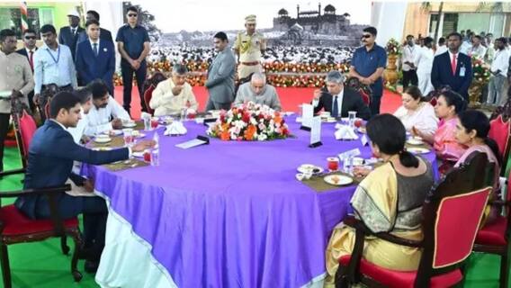 సెంట్రాఫ్ ఎట్రాక్షన్ గా నారా లోకేష్రాజ్ భవన్ లో జరిగిన ఎట్ హోం కార్యక్రమానికి సీఎం చంద్రబాబు తన సతీమణి భువనేశ్వరితో కలిసి హాజరయ్యారు. గవర్నర్, ఛీఫ్ జస్టిస్, సీఎస్ దంపతులు కూడా ఈ కార్యక్రమంలో పాల్గొన్నారు. మరోవైపు మంత్రి నారా లోకేష్ ఈ ప్రోగ్రాంలో ప్రత్యేక ఆకర్షణగా నిలిచారు. ఆయన్ను కలిసేందుకు, ఫొటోలు దిగేందుకు నేతలు, అధికారులు పోటీ పడ్డారు. అలాగే వైఎస్ షర్మిల కనిపించగానే లోకేష్ ఆమెను పలకరించారు. ఆమె కూడా కాసేపు మంత్రి లోకేష్ తో మాట్లాడారు. పవన్ కళ్యాణ్ తన సతీమణి విదేశాల్లో ఉండటంతో ఒంటరిగానే కార్యక్రమానికి హాజరయ్యారు.