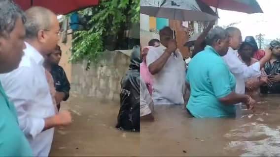 Mylavaram MLA Vasantha Krishna Prasad Visits NTR District: వాయుగుండం ప్రభావంతో ఏపీలోని పలు జిల్లాల్లో భారీ వర్షాలు కురుస్తున్నాయి. శుక్రవారం రాత్రి నుంచి ఎన్టీఆర్ జిల్లా, విజయవాడ, విశాఖ, అల్లూరి, అనంతపురం, కర్నూలు, నంద్యాల, పల్నాడు జిల్లాల్లో వానలు కురుస్తున్నాయి. ప్రజలు అప్రమత్తంగా ఉండాలని వర్షాల నేపథ్యంలో బయటకు రావొద్దని అధికార యంత్రాంగం హెచ్చరికలు జారీ చేసింది. ఈ క్రమంలోనే కృష్ణా జిల్లాలోని (Krishna District) వరద ప్రభావిత ప్రాంతాల్లో మైలవరం (Mylavaram) ఎమ్మెల్యే వసంత వెంకట కృష్ణప్రసాద్ (Vasantha Venkata Krishnaprasad) నడుము లోతు నీటిలో పర్యటించారు. ఇబ్రహీంపట్నం మండలం కొండపల్లి ప్రాంతంలో లోతు నీటిలోనే ఉంటూ వరద బాధితులను పరామర్శించారు. సమస్యలను ఎప్పటికప్పుడు అధికారులకు చేరవేస్తూ తీసుకోవాల్సిన జాగ్రత్తలను సమన్వయం చేశారు.