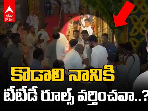 Kodali Nani in Tirumala : తిరుపతి: మాజీ మంత్రి, గుడివాడ ఎమ్మెల్యే కొడాలి నానికి టీటీడీ రూల్స్ వర్తించవా అని ఏపీలో చర్చ మొదలైంది. విజిలెన్స్ సిబ్బంది వారిస్తున్నా మాజీ మంత్రి కొడాలి నాని టీటీడీ నిబంధనలను ఉల్లంఘించారు. ఏకంగా స్వామి వారి మహాద్వారం నుంచే ఆలయంలోకి ప్రవేశించారు. వాస్తవానికి రాష్ట్రపతి నుంచి మొదలుకుని ముఖ్యమంత్రి వరకూ ఓ స్థాయి ఉన్న ప్రభుత్వాధినేతలకు, పాలకులు మాత్రమే మహాద్వారం నుంచి తిరుమల ఆలయంలోకి నేరుగా ప్రవేశించవచ్చు.