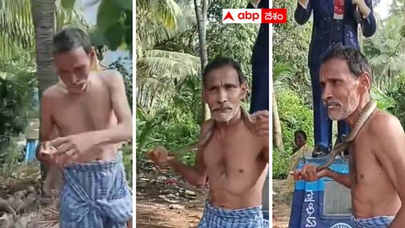 Konaseema Andhra Pradesh Drunk man bitten by snake twice: పాము కనిపిస్తే చాలా దూరం పారిపోతాం. కానీ కొంత మందికి భయం ఉండదు. మద్యం తాగిన ..బీ కేర్ ఫుల్ అనుకునేవారికి అసలు ఉండదు. ఆంధ్రప్రదేశ్లోని కోనసీమ జిల్లా ముమ్మిడివరంలోఆంధ్రప్రదేశ్లోని కోనసీమ జిల్లా ముమ్మిడివరంలో గొల్లపల్లి కొండ అనే పెద్దాయన కూడా అంతే. ఆయన మామూలుగానే పాములంటే భయపడరు.. ఇక మద్యం తాగిన తర్వాత అసలు లెక్క చేయరు. పాముతో ఆయన ఆటలు ఆడేశారు.