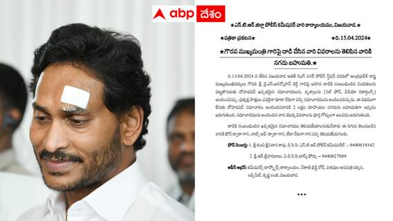 Police have announced Two Lakhs Offer : ఏపీ సీఎం జగన్ పై రాయి దాడి చేసిన ఘటనలో పోలీసులకు ఎలాంటి సమాచారం లేకపోవడంతో బహిరంగ ప్రకటన విడుదల చేశారు. రాయి వేసిన వ్యక్తి గురించి చెబితే రెండు లక్షల రూపాయల బహుమతి ఇస్తామని ప్రకటించారు. సమాచారం ఇచ్చిన వారి పేర్లు రహస్యంగా ఉంచుతామన్నారు. వివరాలు తెలిస్తే 9490619342, 9440627089 సమాచారం ఇవ్వాలని ఎన్టీఆర్ జిల్లా పోలీసులు కోరారు.