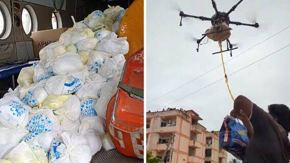 డ్రోన్ల ద్వారా ఆహారంవిజయవాడలో రోడ్లన్నీ జలమయం కావడంతో పడవలు, మర బూట్ల ద్వారానే ప్రస్తుతానికి రవాణా సాధ్యం అవుతోంది. నీటి మట్టం కాస్త తక్కువ ఉన్న చోట్ల జేసీబీలు, పొక్లెయినర్లను వాడుతున్నారు. హెలికాప్టర్ల ద్వారా ఆహారాన్ని, తాగు నీటిని అందిస్తున్నారు. అయితే, సహాయ బృందాలు ఇంకా చేరుకోలేని వరద ప్రాంతాలలో డ్రోన్ ల ద్వారా ప్రజలకు ఆహారం, మంచి నీటిని అందించాలని చంద్రబాబు ఆదేశాలు జారీ చేశారు. ముఖ్యమంత్రి ఆదేశాల మేరకు అధికార యంత్రాంగం డ్రోన్ లను రెడీ చేసింది. వాటి ద్వారా ఎన్డీఆర్ఎఫ్ సిబ్బంది సులభంగా ఆహారాన్ని రవాణా చేయగలుగుతున్నారు.