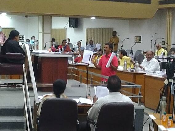 ఇళ్ల పట్టాలు రిజిస్ట్రేషన్ చేయకుండా మోసగించడం, నగరంలో విలువైన స్థలాలను అమ్మకాలకు రాష్ట్ర ప్రభుత్వ జీవోలను 390 ఆమోదించడం , రూ. 289 కోట్ల నిధులు నగరంలో స్ట్రామ్ వాటర్ డ్రైన్ల నిర్మాణం వంటి వాటిపై సభ్యులు అధికారపక్షంపై విరుచుకుపడ్డారు. రూ. 289 కోట్ల నిధులు మంజూరైనవి రాష్ట్ర ప్రభుత్వం కైంకేర్యం చేసిందని ప్రతిపక్ష కార్పోరేటర్లు ఆరోపించారు. చిన్నపాటి వర్షాలకే జలమయం అవుతున్న రోడ్లు. గోతులు రోడ్లతో ఇబ్బందుల పడుతున్న నగర ప్రజలు, అభివృద్ధిపై శ్రద్ధ లేని నగరపాలకులు,కార్మికుల వేతనాలు పెంపుపై మోసగించారని మండిపడ్డారు. కార్పొరేటర్ల వేతనాలు పెంచాలని తీర్మానాలు తీశారు. అయితే కార్పొరేటర్ల వేతనాలు పెంపుదలను అంశాన్ని సిపిఎం వ్యతిరేకించింది. ఎన్ ఎంఆర్ కార్మికులకు హెల్త్ ఇన్సూరెన్స్ కార్డులు శ్రద్ధ లేని పాలకులు కార్పొరేటర్లకు హెల్త్ ఇన్సూరెన్స్ కోసం తీర్మానం చేయటం దుర్మార్గమని సీపీఎం అభ్యంతరం తెలిపింది.
