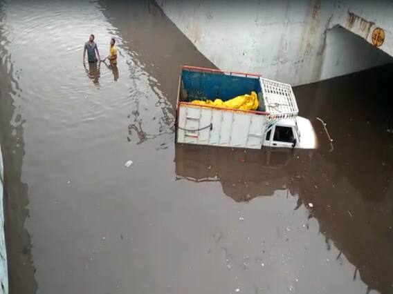 రైల్వే అండర్ బ్రిడ్జి వరదలో చిక్కుకున్న వాహనం