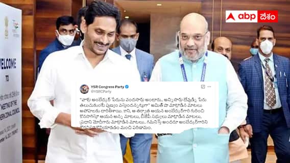 YSRCP support Amit Shah: దేశవ్యాప్తంా పార్లమెంట్లో రాజ్యాంగ నిర్మాత అంబేద్కర్ పై హోంమంత్రి అమిత్ షా చేసిన వ్యాఖ్యలు దుమారం రేపుతున్నాయి. ఈ అంశంలో రాజకీయ పార్టీలన్నీ తమ అభిప్రాయాలను చెబుతున్నాయి. సహజంగానే ఎన్డీఏ పార్టీలు ఎన్డీఏను సమర్థిస్తున్నాయి. ఇండీ కూటమి పార్టీలు అమిత్ షాపై ఆందోళనలు చేస్తున్నాయి. అయితే ఏ కూటమిలో లేని వైసీపీ అనూహ్యంగా అమితా షాకు మద్దతుగా నిలిచింది. ఆయన చేసిన వ్యాఖ్యల్ని సమర్థించిది. అమిత్ షా అంబేద్కర్ అగౌరవ పర్చలేదని తెలిపిది. వైసీపీ అధికారిక ట్విట్టర్ హ్యాండిల్ లో వేసిన ఈ ట్వీట్ వైరల్ అవుతోంది.