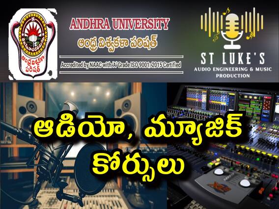 ఏపీలోని ఆంధ్రా యూనివర్సిటీ ఆడియో, మ్యూజిక్ కోర్సుల్లో ప్రవేశాలకు దరఖాస్తులు కోరుతుంది. సెయింట్ ల్యూక్స్ ఆడియో ఇంజినీరింగ్ & మ్యూజిక్ ప్రొడక్షన్తో కలిసి ఏయూ ఈ కోర్సులకు శ్రీకారం చుట్టింది. వీటిలో 3 నెలలు, 6 నెలలు, ఏడాది కోర్సులు అందుబాటులో ఉన్నాయి. వీటితోపాటు 6 నెలల, ఏడాది, రెండేళ్ల కాలపరిమితిలో వోకల్ ట్రైనింగ్, ఇన్స్ట్రుమెంట్ కోర్సులను కూడా అందిస్తున్నాయి.