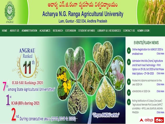 ఏపీలోని ఆచార్య ఎన్జీరంగా వ్యవసాయ విశ్వవిద్యాలయంలో 2023-24 విద్యా సంవత్సరానికి సంబంధించి పలు కోర్సుల్లో ప్రవేశాలకు రిజిస్ట్రేషన్ చేసుకున్న అభ్యర్థులకు సెప్టెంబరు 27 నుంచి వెబ్ఆప్షన్ల నమోదుకు అవకాశం కల్పంచారు. విద్యార్థులు సెప్టెంబరు 27 నుంచి 30 వరకు మొదటి విడత వెబ్ ఆప్షన్లను నమోదు చేసుకోవాల్స ఉంటుంది. సీట్లు పొందిన విద్యార్థులు అక్టోబరు 5 నుంచి 7 వరకు సంబంధిత కళాశాలల్లో చేరాల్సి ఉంటుంది. యూనివర్సిటీ పరిధిలో బీఎస్సీ అగ్రికల్చర్లో 1062 సీట్లు, బీటెక్ ఫుడ్ టెక్నాలజీలో 55 సీట్లు అందుబాటులో ఉన్నాయి.