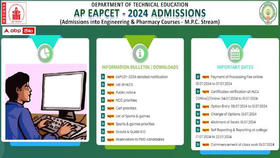 APEAPCET 2024 Web Counselling Schedule: ఏపీలో ఇంజినీరింగ్ ప్రవేశాలకు సంబంధించిన కౌన్సెలింగ్ షెడ్యూలు విడుదలైంది. ఈ మేరకు జూన్ 29న ఏపీఎప్సెట్ కౌన్సెలింగ్ నోటిఫికేషన్ను అధికారులు విడుదల చేశారు. ప్రకటించిన షెడ్యూలు ప్రకారం.. ఎప్సెట్ పరీక్షలో అర్హత సాధించిన అభ్యర్థులు జులై 1 నుంచి 7 వరకు ప్రాసెసింగ్ ఫీజు, రిజిస్ట్రేషన్లు చేసుకోవాల్సి ఉంటుంది. వీరికి జులై 4 నుంచి 10 వరకు సర్టిఫికేట్ వెరిఫికేషన్ నిర్వహిస్తారు. అభ్యర్థులు కౌన్సెలింగ్ ఫీజు కింద రూ1200 చెల్లించాల్సి ఉంటుంది. ఎస్సీ, ఎస్టీ అభ్యర్థులు రూ.600 చెల్లిస్తే సరిపోతుంది. క్రెడిట్ కార్డు/డెబిట్ కార్డు/ నెట్ బ్యాంకింగ్ ద్వారా ఫీజు చెల్లించవచ్చు.