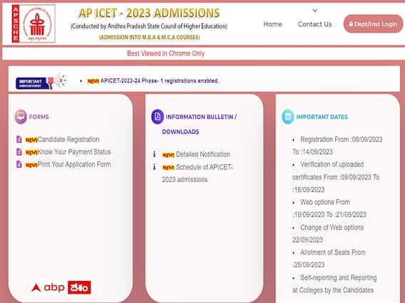 ✦ AP ICET కౌన్సెలింగ్ వెబ్సైట్, https://icet-sche.aptonline.in/ వెళ్లాలి.