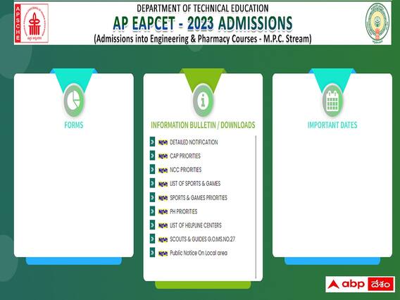 ఏపీలోని ఇంజినీరింగ్ కళాశాలల్లో ప్రవేశాలకు నిర్వహించిన ఏపీఈఏపీసెట్-2023 కౌన్సెలింగ్ షెడ్యూలును ఉన్నత విద్యామండలి జులై 19న విడుదల చేసింది. అధికారిక వెబ్సైట్లో కౌన్సెలింగ్ నోటిఫికేషన్ను అందుబాటులో ఉంచింది. ప్రకటించిన షెడ్యూలు ప్రకారం జులై 24 నుంచి కౌన్సెలింగ్ ప్రక్రియ ప్రారంభంకానుంది. ఏపీఈఏపీసెట్-2023 కౌన్సెలింగ్లో భాగంగా తొలి దశలో ఎంపీసీ స్ట్రీమ్ విద్యార్థులకు యూనివర్సిటీ & ప్రైవేటు ఇంజినీరింగ్ కాలేజీలు, ప్రైవేటు యూనివర్సిటీల కాలేజీలలో కన్వీనర్ కోటా కింద ఇంజినీరింగ్, అగ్రికల్చర్ సీట్లలో ప్రవేశాలు కల్పిస్తారు.