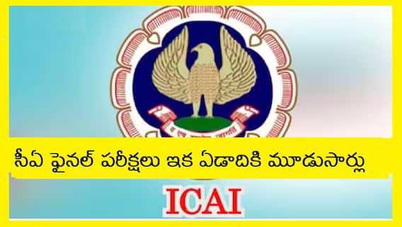 ICAI Final Exams: దేశంలోని ఛార్టెడ్ అకౌంటెంట్(సీఏ) ఫైనల్ విద్యార్థులకు ఇన్స్టిట్యూట్ ఆఫ్ చార్టెర్డ్ అకౌంటెంట్స్ ఆఫ్ ఇండియా(ఐసీఏఐ) గుడ్ న్యూస్ తెలిపింది. ఇక ఏడాదిలో మూడుసార్లు సీఏ ఫైనల్ పరీక్షలు నిర్వహించనున్నట్లు ఈ మేరకు ప్రకటించింది. ప్రస్తుతం ఏడాదికి రెండుసార్లు సీఏ ఫైనల్ పరీక్షలు నిర్వహిస్తున్న సంగతి తెలిసిందే. ఈ ఏడాది నుంచి మూడుసార్లు పరీక్షలు నిర్వహించనున్నట్లు గురువారం (మార్చి 28న) ప్రకటించింది.