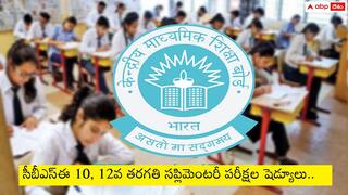 CBSE Supplementary Exams Date Sheet: సీబీఎస్ఈ 10, 12వ తరగతి సప్లిమెంటరీ పరీక్షల షెడ్యూలును సెంట్రల్ బోర్డు ఆఫ్ సెకండరీ ఎడ్యుకేషన్ జూన్ 7న విడుదల చేసింది. ప్రకటించిన షెడ్యూలు ప్రకారం.. జులై 15 నుంచి 22 వరకు పదోతరగతి సప్లిమెంటరీ పరీక్షలు నిర్వహించనున్నారు. పదోతరగతి విద్యార్థులు తమ మార్కులను మెరుగుపరుచుకొనేందుకు రెండు సబ్జెక్టులను సప్లిమెంటరీలో భాగంగా రాసుకొనేందుకు వెసులు బాటు కల్పించిన బీసీసీఐ అధికారులు.. 12వ తరగతి విద్యార్థులకు ఒక సబ్జెక్టులో మాత్రమే అవకాశం ఇస్తూ నిర్ణయం తీసుకున్న విషయం తెలిసిందే. జులై 15న ఉదయం 10.30 గంటల నుంచి మధ్యాహ్నం 1.30 గంటల వరకు 12వ తరగతి సబ్జెక్టు పరీక్షలు నిర్వహించనున్నారు.