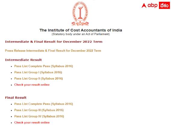 సీఎంఏ ఇంటర్, ఫైనల్ ఫలితాల కోసం క్లిక్ చేయండి..