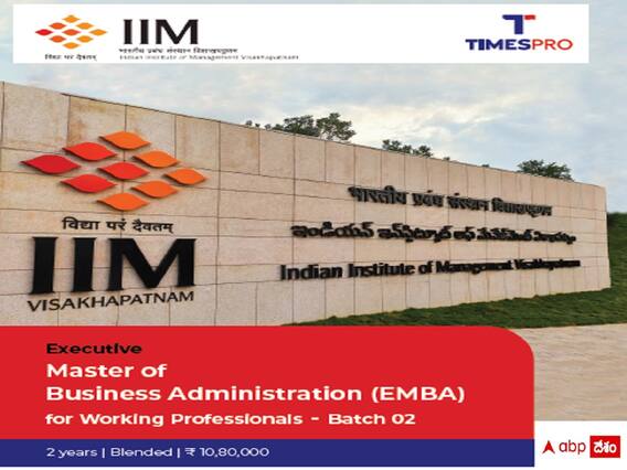 IIM Visakhapatnam EMBA Admissions: విశాఖపట్నంలోని ఇండియన్ ఇన్స్టిట్యూట్ ఆఫ్ మేనేజ్మెంట్(ఐఐఎం) 2024-26 విద్యా సంవత్సరానికిగాను ఎగ్జిక్యూటివ్ ఎంబీఏ (EMBA) కోర్సులో ప్రవేశాలకు నోటిఫికేషన్ విడుదల చేసింది. గుర్తింపు పొందిన ఏదైనా యూనివర్సిటీ నుంచి బ్యాచిలర్ డిగ్రీతోపాటు తగిన అనుభవం ఉన్నవారు (Working Professionals) ఈ కోర్సుకు దరఖాస్తు చేసుకోవడానికి అర్హులు. అభ్యర్థులు జనవరి 27లోగా ఆన్లైన్ విధానంలో దరఖాస్తులు సమర్పించాలి. అభ్యర్థులు దరఖాస్తు ఫీజుగా రూ.2,950 చెల్లించాల్సి ఉంటుంది. విద్యార్హత మార్కులు, పని అనుభవం, ప్రవేశ పరీక్ష, ఇంటర్వ్యూ ఆధారంగా అభ్యర్థులకు సీటు కేటాయిస్తారు. సీట్లు పొందినవారికి 2024 మే 26 నుంచి తరగతులు ప్రారంభంకానున్నాయి. కోర్సు 2026 ఏప్రిల్ వరకు కొనసాగనుంది. కోర్సు ఫీజును రెండేళ్ల కాలానికి రూ.10.8 లక్షలుగా నిర్ణయించారు.