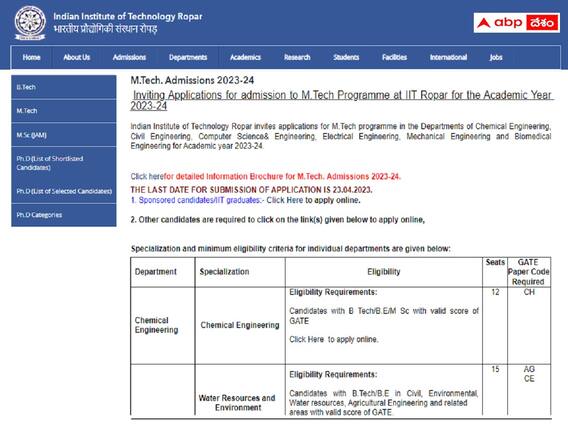 పంజాబ్ రాష్ట్రంలోని ఇండియన్ ఇన్స్టిట్యూట్ ఆఫ్ టెక్నాలజీ రోపర్ 2023-24 విద్యా సంవత్సరానికి ఎంటెక్ ప్రోగ్రాంలో ప్రవేశాలకు నోటిఫికేషన్ విడుదల చేసింది. ఆన్లైన్ ద్వారా దరఖాస్తుచేయాలి. బీఈ, బీటెక్ లేదా ఎంఎస్సీ, ఎంసీఏ ఉత్తీర్ణతతో పాటు గేట్ 2023/ 2022/ 2021లో అర్హత సాధించి ఉండాలి.