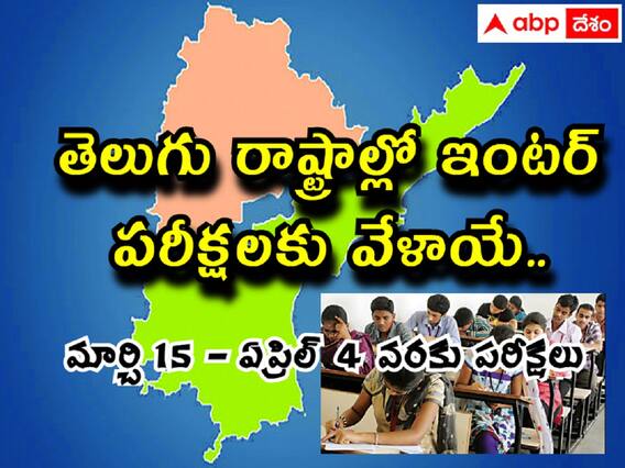 ఏపీలో 10 లక్షల మంది విద్యార్థులు..➥ ఏపీలో మార్చి 15 నుంచి ఏప్రిల్ 4వ తేదీ వరకు జరిగే ఇంటర్మీడియట్ పరీక్షలకు ఏర్పాట్లన్నీ పూర్తి చేసినట్లు రాష్ట్ర ఇంటర్ బోర్డు వెల్లడించింది. ఫస్ట్ ఇయర్ పరీక్షలు మార్చి 15 నుంచి ఏప్రిల్ 3 వరకు, సెకండియర్ పరీక్షలు మార్చి 16 నుంచి ఏప్రిల్ 4 వరకు జరగనున్నాయి. ఆయా తేదీల్లో ఉదయం 9 గంటల నుంచి మధ్యాహ్నం 12 గంటల వరకు ఎగ్జామ్స్ను నిర్వహించనున్నారు.