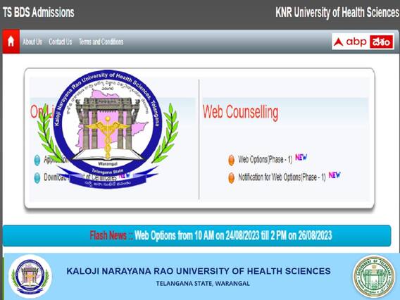 తెలంగాణలోని ప్రభుత్వ, ప్రైవేట్ మెడిక్ కాలేజీల్లో కన్వీనర్ కోటా బీడీఎస్ ప్రవేశాలకు సంబంధించిన మొదటి విడత కౌన్సెలింగ్ ప్రక్రియను కాళోజీ నారాయణరావు హెల్త్ యూనివర్సిటీ ప్రారంభించింది. విద్యార్థులు ఆగస్టు 24న ఉదయం 10 గంటల నుంచి ఆగ్టు 26న మధ్యాహ్నం 2 గంటల వరకు వెబ్ఆప్షన్లు నమోదు చేసుకోవాల్సి ఉంటుంది. తుది మెరిట్ జాబితాలోని అర్హులైన అభ్యర్థులు కళాశాలల వారీగా ఆప్షన్లు నమోదు చేసుకోవాలి. మెరిట్ జాబితా, అదేవిధంగా కళాశాల వారీగా సీట్ల (సీట్ మ్యాట్రిక్స్) వివరాలను వెబ్సైట్లో అందుబాటులో ఉంచారు.