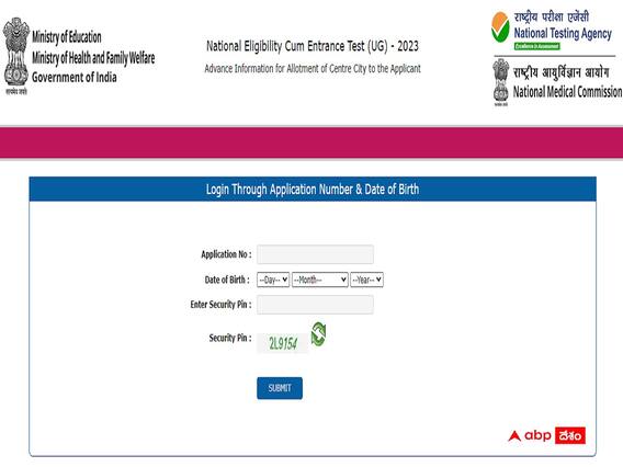 ➥ ఆ తర్వాత వచ్చే లాగిన్ పేజీలో అభ్యర్థులు తమ అప్లికేషన్ నంబర్, పుట్టిన తేదీ వివరాలతో పాటు అక్కడ పేర్కొన్న సెక్యూరిటీ పిన్ వివరాలు నమోదుచేసి SUBMIT బటన్ మీద క్లిక్ చేయాలి.
