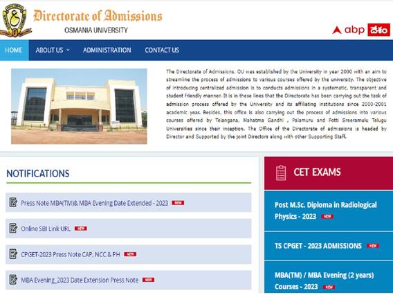 బెనిఫిషియరీ చిరునామా: Directorate of Admissions, Osmania University, Hyderabad, TS.