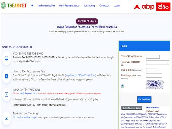 ➥ జులై 21 – 22: ఆన్లైన్లో బేసిక్ ఇన్ఫర్మేషన్ నింపాలి. ప్రాసెసింగ్ ఫీజు చెల్లించి, స్లాట్ బుక్ చేసుకోవాలి. సర్టిఫికెట్ వెరిఫికేషన్కు సంబంధించి తేదీ, సమయం ఎంచుకోవాల్సి ఉంటుంది(ఫస్ట్ ఫేజ్లో ఈ వివరాలు నింపని విద్యార్థులు మాత్రమే).