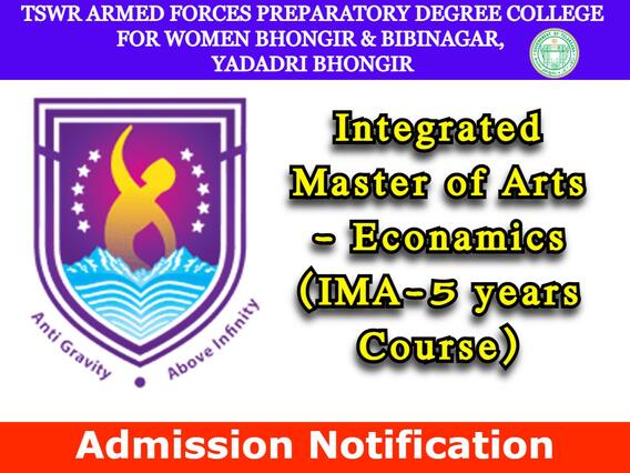 యాదాద్రి భువనగిరి జిల్లాలోని తెలంగాణ సాంఘిక సంక్షేమ గురుకుల సైనిక మహిళా డిగ్రీ కళాశాల అందిస్తున్న ఐదేళ్ల ఇంటిగ్రేటెడ్ ఎంఏ ఎకనామిక్స్ ప్రోగ్రామ్లో ప్రవేశానికి నోటిఫికేషన్ వెలువడింది. తెలంగాణ రాష్ట్రానికి చెందిన మహిళలు దరఖాస్తు చేసుకోవచ్చు. ఎంట్రెన్స్ ఎగ్జామ్, ఫిజికల్ ఫిట్నెస్ టెస్ట్లు, సైకో అనలిటికల్ టెస్ట్లు, మెడికల్ టెస్ట్లు, షార్ట్ లెక్చర్, ఇంటర్వ్యూల ద్వారా అభ్యర్థులను ఎంపిక చేస్తారు.