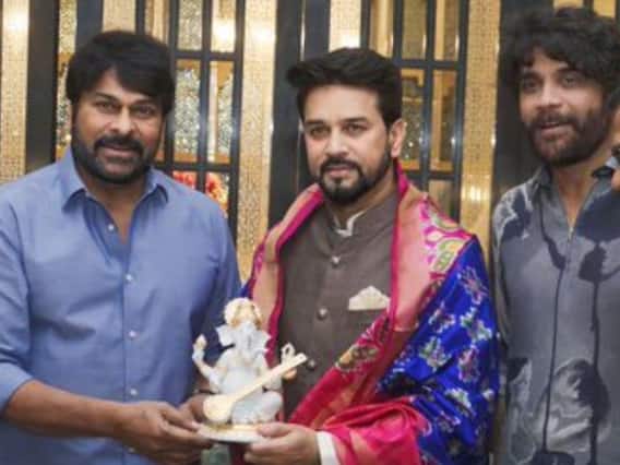 కేంద్ర సమాచార, క్రీడా శాఖల మంత్రి అనురాగ్ ఠాకూర్ ఇటీవల హైదరాబాద్ లో పర్యటించారు. ఈ సందర్భంగా పలు కార్యక్రమాల్లో ఆయన పాల్గొన్నారు. పర్యటనల్లో భాగంగా మెగాస్టార్ చిరంజీవి నివాసానికి వెళ్లారు. అక్కడ చిరంజీవి, అల్లు అరవింద్, అక్కినేని నాగార్జునలతో మాట్లాడారు. ఈ సందర్భంగా భారత చలన చిత్ర పరిశ్రమ గురించి పలు విషయాలను చర్చించారు. ఈ భేటీకు సంబంధించిన ఫోటోలను మెగాస్టార్ చిరంజీవి తన సోషల్ మీడియా ఖాతాలో షేర్ చేశారు. ప్రస్తుతం ఈ ఫోటోలు నెట్టింట వైరల్ అవుతున్నాయి.