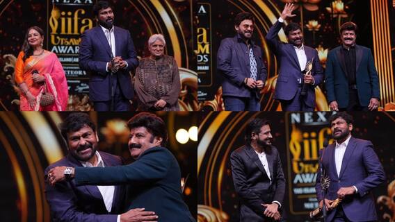 Megastar Chiranjeevi Honoured with Outstanding Achievement Award: టాలీవుడ్ మెగాస్టార్ చిరంజీవి అవార్డుల లిస్టులో మరో ప్రతిష్టాత్మక అవార్డు వచ్చేసింది. భారతీయ సినీ రంగాన్ని ఆయన చేస్తున్న సేవకు గాను IIFA 2024 నిర్వాహకులు ప్రతిష్టాత్మక 'ఔట్ స్టాండింగ్ అచీవ్మెంట్ ఇన్ ఇండియన్ సినిమా' పురస్కారాన్ని అందజేశారు. దుబాయ్ వేదికగా జరిగిన IIFA వేడుకలో ప్రముఖ బాలీవుడ్ నటి షబానా అజ్మీ, ప్రముఖ గీత రచయిత జావేద్ అక్తర్ చేతుల మీదుగా ఆయన ఈ అవార్డును తీసుకున్నారు. ఈ సందర్భంగా టాలీవుడ్ స్టార్ హీరోలు నందమూరి బాలయ్య, దగ్గుబాటి వెంకటేష్ స్టేజి మీదకు వచ్చి మెగాస్టార్ ను అభినందించారు. ఆయనను ఆలింగనం చేసుకుని ఫోటోలకు పోజులిచ్చారు. టాలీవుడ్ స్టార్ హీరోలను ఒకే వేదికపై చూసి ఈ వేడుకలో పాల్గొన్న వాళ్లంతా సంతోషంతో చప్పట్లు కొట్టారు. ప్రస్తుతం ఈ ఫోటోలు సోషల్ మీడియాలో వైరల్ అవుతున్నాయి. సినీ అభిమానులు మెగాస్టార్ చిరంజీవికి అభినందనలు చెప్తున్నారు.
