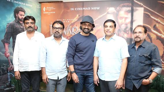 దేవర (Devara) మూవీ తన కెరీర్ లోనే బెస్ట్ ఫిల్మ్ అంటున్నారని, ఆ విషయంలో వారికి థ్యాంక్స్ అని చెప్పారు దర్శకుడు కొరటాల శివ (Koratala Shiva). సినిమా విడుదల సందర్భంగా అర్థరాత్రి నుంచి ఇప్పటి వరకు వరుసగా ఫోన్ కాల్స్ వస్తున్నాయని, అందరూ సినిమాని మెచ్చుకుంటున్నారని, తమ మూడేళ్ల కష్టానికి దక్కిన ఫలితం ఇదని చెప్పారాయన. ఇంత పెద్ద విజయాన్ని ఇచ్చిన తెలుగు ప్రేక్షకులకు ధన్యవాదాలు అని చెప్పారు కొరటాల శివ. దేవర మూవీలో నటించిన యాక్టర్స్, టెక్నీషియన్స్.. అందరికీ స్పెషల్ థ్యాంక్స్ అన్నారు. వారందరి వల్లే సినిమా ఈస్థాయికి వెళ్లిందని చెప్పారు. సినిమాకోసం ప్రతి ఒక్కరూ ఎంతో శ్రమించారని, అందుకే ఇలాంటి సక్సెస్ వచ్చిందన్నారు. అందరూ దీన్ని తమ సొంత సినిమాలాగా భావించారన్నారు. మిర్చి నుంచి తన సినిమాలన్నిటినీ దిల్ రాజు డిస్ట్రిబ్యూట్ చేశారని, ఆయన ఉంటే తనకు సక్సెస్ ఖాయం అని చెప్పారు కొరటాల. సినిమా రిలీజైన సందర్భంగా ఏర్పాటు చేసిన ప్రెస్ మీట్ లో దర్శకుడు కొరటాల శివ, నిర్మాత కల్యాణ్ రామ్, డిస్ట్రిబ్యూటర్ దిల్ రాజు, రామజోగయ్య శాస్త్రి, సాబు సిరిల్ పాల్గొన్నారు.