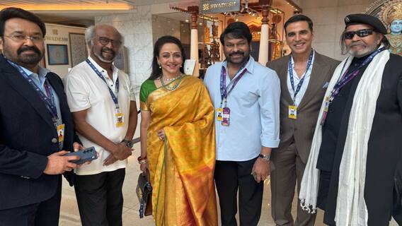 ఇక మెగాస్టార్ చిరంజీవి, మోహన్ లాల్, రజినీకాంత్, హేమమాలిని, అక్షయ్ కుమార్, మిథున్ చక్రవర్తి కలిసి ఓ ఫోటో దిగారు. చాలా రోజుల తర్వాత హీరోలంతా ఒకే ఫ్రేమ్లో కనిపించడంతో ఆ పిక్ వైరల్గా మారింది. సూపర్గా ఉందంటూ నెటిజన్లు కామెంట్స్ చేస్తున్నారు. ఈ ఈవెంట్ కోసం బుధవారమే చిరంజీవి ముంబయి చేరుకున్నారు.