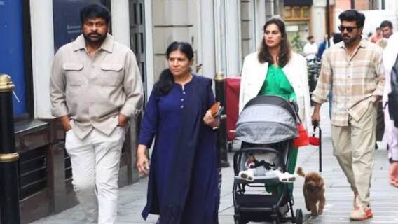 Mega Family In London For Ram Charan Wax Statue Launching Event: మెగాస్టార్ చిరంజీవి (Chiranjeevi) ఫ్యామిలీ లండన్ (London) చేరుకున్నారు. చిరంజీవితో పాటు ఆయన భార్య సురేఖ, రామ్ చరణ్ - ఉపాసన దంపతులు, వీరి ముద్దుల కుమార్తె క్లీంకార, పెంపుడు శునకం రైమ్ లండన్లో ప్రత్యక్షమయ్యారు. ఈ ఫోటో సోషల్ మీడియాలో వైరల్గా మారింది.