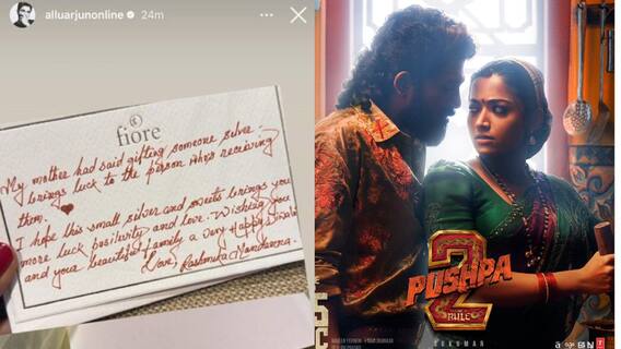 దేశ వ్యాప్తంగా మూవీ లవర్స్ అందరూ ఆసక్తిగా ఎదురు చూస్తున్న మోస్ట్ అవైటెడ్ మూవీ ఏదన్నా ఉందా అంటే అది 'పుష్ప 2' మూవీనే. ఇక ఈ సినిమాలో హీరోయిన్ గా నటించిన రష్మిక మందన్న తాజాగా అల్లు అర్జున్ కి దీపావళి కానుకగా పంపిన గిఫ్ట్ గురించి చర్చ నడుస్తోంది. అల్లు అర్జున్ ఆమె పంపిన గిఫ్ట్ గురించి సోషల్ మీడియాలో ప్రస్తావిస్తూ కృతజ్ఞతలు తెలిపారు. అయితే అందులో రష్మిక మందన్న అల్లు అర్జున్ కి ఒక వెండి కాయిన్ ని బహుమతిగా ఇవ్వడం అందరి దృష్టిని ఆకర్షించింది. ఆమె ఇలా ఎందుకు ఇచ్చిందో ఆ నోట్లో వివరంగా చెప్పుకొచ్చింది.