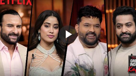 మరికొన్ని గంటలో 'దేవర' మాస్ ఫెస్ట్ మొదలు కాబోతోంది. ఈ నేపథ్యంలోనే చిత్ర బృందం ప్రమోషన్స్ లో బిజీగా ఉంది. రీసెంట్ గా ప్లాన్ చేసిన ప్రీ రిలీజ్ ఈవెంట్ ఊహించని విధంగా క్యాన్సిల్ అయిన విషయం తెలిసిందే. అయితే ఇప్పటికే తెలుగులో ఈ పాన్ ఇండియా మూవీపై అంచనాలు భారీగా ఉండగా, హిందీ బెల్ట్ లో కూడా మరింతగా బజ్ క్రియేట్ చేయడానికి ఉన్న అవకాశాలు అన్నింటిని వాడుకుంటుంది 'దేవర' చిత్ర బృందం. హిందీ పాపులర్ షో ది గ్రేట్ ఇండియన్ కపిల్ షోలో జాన్వీ కపూర్, సైఫ్ అలీ ఖాన్లతో కలిసి మ్యాన్ ఆఫ్ మాసెస్ ఎన్టీఆర్ సందడి చేసిన ఎపిసోడ్ రిలీజ్ డేట్ ను తాజాగా నెట్ ఫ్లిక్స్ అనౌన్స్ చేసింది.