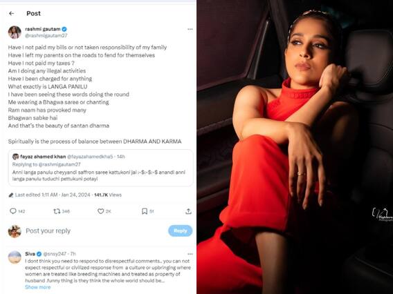 ఇక గత కొంత కాలంగా రష్మిక హిందూ సనాతన ధర్మం గురించి సోషల్ మీడియాలో పోస్టులు పెడుతోంది. హిందూ మతం, దాని ఔన్నత్యం గురించి రాసుకొస్తుంది. అయితే, కొందరు నెటిజన్లు ఆమె పోస్టులపై వ్యంగ్యంగా స్పందిస్తున్నారు. ఈ వ్యాఖ్యలపై ఆమె సమాధానం కూడా ఘాటుగానే ఇస్తోంది. తాజాగా అయోధ్య రామ మందిరం ప్రారంభంపై ఆమె సంతోషం వ్యక్తం చేస్తూ ఓ ట్వీట్ చేసింది. దీనికి ఓ నెటిజన్ తీవ్ర అభ్యంతరకర వ్యాఖ్యలు చేశాడు. “అసభ్యకర పనులన్నీ చేసి కాషాయ చీర కట్టుకుని దేవుడి పేరును జపిస్తే చేసిన పాపాలన్నీ పోతాయా?” అని ప్రశ్నించాడు.