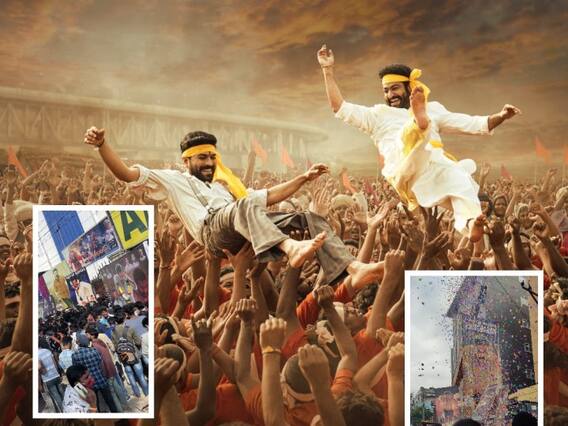 దర్శక ధీరుడు రాజమౌళి దర్శకత్వంలో తెరకెక్కిన RRR Trailer గురువారం యూట్యూబ్లో విడుదలైన సంగతి తెలిసిందే. అయితే, ఇంతకంటే ముందే.. తెలుగు రాష్ట్రాల్లోని థియేటర్లలో కూడా ట్రైలర్ను విడుదల చేసి అభిమానులకు పని చెప్పారు. దీంతో ఫ్యాన్స్ రచ్చ మామూలుగా లేదు. భారీ సంఖ్యలో థియేటర్లకు తరలివెళ్లి.. ట్రైలర్ చూశారు. అరుపులు.. కేకలతో హోరెత్తించారు. సినిమా విడుదల తర్వాత తమ రచ్చ ఎలా ఉండబోతుందో చూడండి అన్నట్లుగా.. అభిమానులు కూడా తమ సందడితో ‘ట్రైలర్’ చూపించారు. కొన్ని చోట్ల పాలాభిషేకాలు కూడా చేశారు.