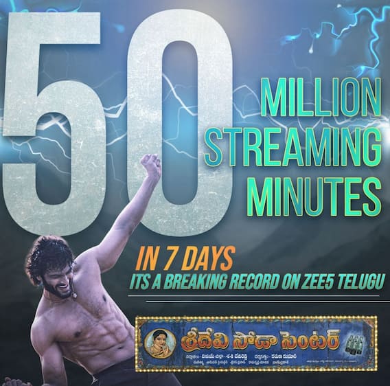 సుధీర్ బాబు, ఆనంది జంటగా 'పలాస 1978' ఫేమ్ కరుణ కుమార్ తెరకెక్కించిన సినిమా 'శ్రీదేవి సోడా సెంటర్'. తమ కులం వాడిని కాకుండా వేరే కులం వ్యక్తిని ప్రేమించిన కారణంగా కన్న కుమార్తెను ఓ తండ్రి ఎంత కర్కశంగా చంపాడు? అనే కథాంశంతో రూపొందిన చిత్రమిది. పరువు హత్యల నేపథ్యంలో తెలుగులో తక్కువ సినిమాలు వచ్చాయి. వచ్చిన చిత్రాల్లో సహజత్వానికి దగ్గరగా ఉన్న సినిమాగా 'శ్రీ దేవి సోడా సెంటర్'. థియేటర్లలో విడుదలైన ఈ సినిమాను 'జీ 5' తమ ఓటీటీ వేదికలో విడుదల చేసింది.'జీ 5' ఓటీటీ వేదికలో 'శ్రీదేవి సోడా సెంటర్' సినిమాకు 50 మిలియన్ మినిట్స్ వ్యూస్ వచ్చాయట. అదీ ఏడు రోజుల్లో! అంటే... వారంలో ఈ సినిమాను కోటి నిమిషాలు పాటు జనాలు చూశారన్నమాట. ఈ సందర్భంగా సుధీర్ బాబుతో పాటు సినిమా యూనిట్ సభ్యులు, 'జీ 5'కు మహేష్ బాబు కంగ్రాట్స్ చెబుతూ ఇన్స్టాగ్రామ్ స్టోరీలో పోస్టర్ విడుదల చేశారు. సుధీర్ బాబు సైతం ట్విట్టర్ వేదికగా తన సంతోషాన్ని వ్యక్తం చేశారు.