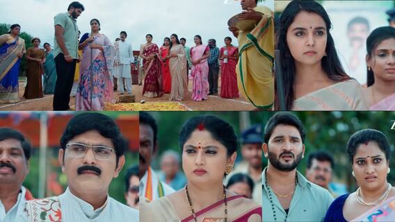 సూర్యప్రతాప్ మనసులో ఏంటి ఇలా జరిగింది అని అనుకుంటాడు. విజయాంబిక కూడా వెళ్లిపోవడానికి ప్రయత్నిస్తే రుక్మిణి అత్త నువ్వు ఎక్కడికి వెళ్లిపోతున్నావ్ అత్త మీరు ఫీలవుతున్నారని నాకు తెలుసు రండి అని బలవంతంగా విజయాంబిక దీపక్ను తీసుకెళ్లి గునపం ఇస్తుంది. ఇద్దరిని భూమి తవ్వమని అంటారు. విజయాంబిక, దీపక్లు భూమి తవ్వితే బాంబ్ పేలినట్లు కలగని కంగారు పడతారు. ఇక కోమలి కారులో కూర్చొని సుమని పంపేస్తుంది. చివరకు రుక్మిణి భూమి తవ్వడానికి రెడీ అవుతుంది. రుక్మిణి తవ్వే టైంకి రాజు పరుగున వచ్చి రూపని పట్టుకొని పక్కకి పరుగెడతాడు. గునపం భూమ్మీద పడి బాంబ్ పేలిపోతుంది. మితగా అందరూ చెల్లా చెదురుగా పరుగులు పెడతారు. సూర్యప్రతాప్ దగ్గరకు సెక్యూరిటీ వస్తుంది. అంబులెన్స్లు ఘటనా స్థలానికి వస్తాయి. మీడియా చేరుకుంటుంది.