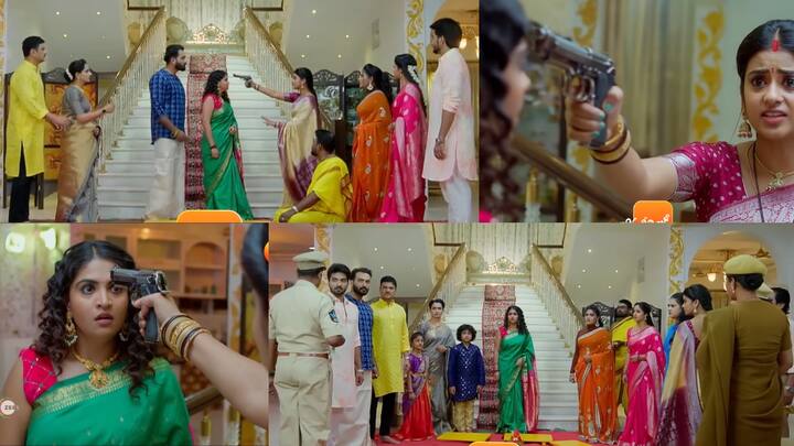 సరయు లక్ష్మీకి వీడియో కాల్ చేసి మిత్ర, మనీషాలకు పెళ్లి చేసి బయటకు రావాలి గంటలో రాకపోతే నీ పిల్లల్ని చంపేస్తానని అంటుంది. దాంతో సరే అని లక్ష్మీ అంటుంది. ఇక పంతులు మనీషాని తీసుకురమ్మని చెప్తారు. లక్ష్మీ తాను తీసుకొస్తానని వెళ్తుంది. దగ్గరుండి మనీషాని లక్ష్మీ తీసుకొని వస్తుంది. పీటల మీద నేను ముందు కూర్చొవాలా మిత్ర కూర్చొవాలా అని మనీషా పంతుల్ని అడిగితే మీ ఇద్దర్ని నేను కూర్చొనివ్వను. అసలు ముందు నువ్వు బతుకుతావో లేదో చూసుకో అని చెప్పి మనీషానికి గన్ గురి పెడుతుంది. అందరూ షాక్ అయిపోతారు. ఆయన పక్కన నువ్వు కూర్చొంటే నిన్ను బతకనిస్తాను అనుకున్నావా. నీ మెడలో తాళి కడితే నేను బతుకుతాను అనుకుంటున్నావా అని అంటుంది. మిత్ర గారిని పెళ్లి చేసుకోవడానికి సరయుతో కలిసి మిత్ర పిల్లల్ని కిడ్నాప్ చేయించిందని లక్ష్మీ చెప్తుంది. పిల్లలు సరయు దగ్గర ఉన్నారని దేవయాని చెప్పిందని లక్ష్మీ చెప్తుంది. మనీషా పిల్లలు కిడ్నాప్ అయి సరయు దగ్గర ఉన్నారని మనీషా చెప్పిందని దేవయాని చెప్తుంది. మిత్ర తన మెడలో తాళి కట్టగానే సరయు పిల్లలకు విషం ఇచ్చి చంపుతుందని దేవయాని చెప్పేస్తుంది. మనీషా షాక్ అయిపోతుంది.