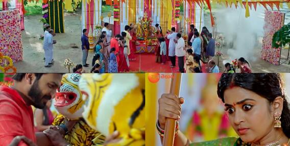 అందరూ అమ్మవారి పూజలో ఉంటారు. రౌడీలు కూడా అక్కడే అందరిలో కలిసి పోయి ఉంటారు. లక్ష్మీ చుట్టూ పరీక్షించి చూస్తుంటుంది. ఇక లక్ష్మీ కత్తిని అమ్మవారి ముందు గుమ్మడి కాయకు గుచ్చుతుంది. ఇంతలో నలుగు వైపులా బాంబులు పేలుతాయి. అందరూ చెల్లా చెదురు అయి పరుగులు తీస్తారు. పులి వేషంలో ఉన్న ఇద్దరు రౌడీలు మిత్రని పట్టుకొని తీసుకెళ్లిపోవడానికి ప్రయత్నిస్తారు. జాను వివేక్ని పిలుస్తుంది. లక్ష్మీ అందరూ ఎక్కడ ఉన్నారా అని చూస్తుంది. దేవయాని మనీషాతో నువ్వే ప్లాన్ చేశావా అని అడిగితే తానేం చేయలేదు అని మనీషా చెప్తుంది. ఇక వివేక్ కోసం దేవయాని వెళ్లిపోతుంది. ఓ వైపు అరవింద, మరోవైపు మనీషా మిత్రల్ని పిలుస్తారు. మిత్రని పులి వేషంలో ఉన్న రౌడీలు కొడుతుంటే లక్ష్మీ వెళ్లి అడ్డుకుంటుంది. ఇక జానుని చూసిన దేవయాని ఒంటరిగా దొరికింది అనుకొని జాను దగ్గరకు మెల్లగా వెళ్తుంటుంది. ఇంకో రౌడీ అమ్మవారి ముందు ఉన్న కత్తి దొంగిలించబోతే లక్ష్మీ చూసి త్రిశూలంతో వాడిని చితక్కొడుతుంది.