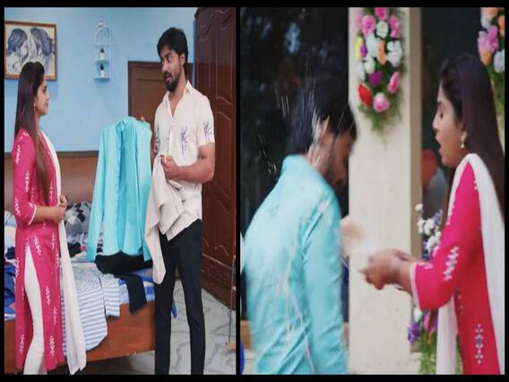 తనకి చీర తీసుకొచ్చి ఇచ్చిన రిషి కోసం డ్రెస్ సెలెక్ట్ చేయాలి అనుకుంటుంది వసుధార. వసుధార: ఈ కాంబినేషన్ బావుంటుంది వేసుకోండి సార్ రిషి: ఇంత అభిమానంగా సెలెక్ట్ చేస్తోంది అని వేసుకుని లోపల నుంచి బయటకు వస్తాడుఫణీంద్ర: హేయ్ రిషి నీ డ్రెస్ సెన్స్ చాలా బావుంటుంది కదా ఇదేంటి ఇలా ఉంది...రిషి ఏం సమాధానం చెప్పలేక వసుధార వైపు చూస్తాడు.. నేను బలవంతంగా ఆ డ్రెస్ వేయించానా అని బాధపడుతుంది వసుధార. దీంతో ఎలాగైనా రిషితో ఆ డ్రెస్ విప్పించేయాలని ప్లాన్ చేసుకుని..కాఫీ ఒలకబోసేస్తుంది.. ఎందుకిలా చేసిందో అర్థం కాక రిషి షాక్ లో చూస్తుంటాడు...