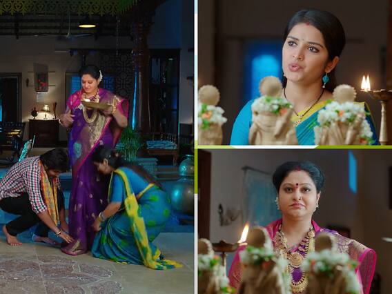 లోకజ్ఞానం లేనివాడని... అక్కడ ఏదైనా అవమానం జరిగితే తట్టుకోలేడని అందుకే వంటల పోటీకి వద్దని చెప్పినట్టు వివరిస్తుంది జ్ఞానంభ. చిన్నప్పటి నుంచి నీ వంటలు చూసి పెరిగాడని.. వాటితోనే గోదావరి జిల్లాల్లో పేరు సంపాదించుకున్నాడని అంటాడు.