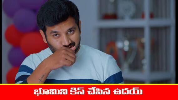 అంటూ చెప్పిన మాటలు గుర్తుకు చేసుకుంటాడు ఉదయ్. బయటకు చూస్తే గగన్ రూంలోకి వస్తుంటాడు. వెంటనే టేబుల్ మీద ఉన్న పేపర్స్ కిందపడేలా చేస్తాడు. దీంతో భూమి, ఉదయ్ ఇద్దరూ కలసి టేబుల్ కిందకు కూర్చుని పేపర్స్ తీస్తుంటారు. అప్పుడే గగన్ రూం డోర్ ఓపెన్ చేస్తాడు. వెంటనే ఉదయ్ పైకి లేచి పెదవి తుడచుకుంటాడు. గగన్ చూడగానే భూమి తనకు లిఫ్ కిస్ ఇచ్చిందని అనుకునేలా చేస్తాడు. గగన్ చూసి బయటకు వెళ్లబోతుంటే..ఉదయ్ దగ్గరకు వెళ్తాడు.