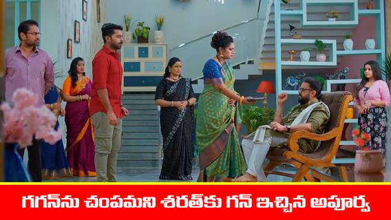 అని అపూర్వ చెప్పగానే.. చెర్రి షాక్ అవుతాడు. అంతకుముందు తాను గగన్తో భూమితో మాట్లాడింది గుర్తు చేసుకుంటాడు. ఎమోషనల్ అవుతాడు. అపూర్వ మాత్రం గగన్ను తిడుతూనే ఉంటుంది. నిజంగానే వాడు వస్తే వాణ్ని చంపేయ్ బావ అంటూ శరత్ చంద్రకు గన్ ఇచ్చి పైకి వెళ్తుంది. చెర్రి బాధతో అన్నయ్య ప్రేమిస్తుంది భూమినా..? అంటూ ప్రసాద్ను అడుగుతాడు. ప్రసాద్ అవునని చెప్పడంతో చెర్రి గుండెలు పగిలేలా మనసులో బాధపడుతుంటాడు. ఇంతలో శారద, గగన్, పూరి తాంబూలాలు తీసుకుని వస్తారు. ఇంతటితో ఇవాళ్టీ ఎపిసోడ్ అయిపోతుంది.