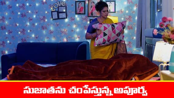Meghasandesam Serial Today Episode: గగన్ను ప్రతిసారి భూమి సేవ్ చేస్తుందని ఆలోచిస్తుంది. సుజాత చెప్పిన మాటలు గుర్తు చేసుకుంటుంది. భూమి ఉండగా గగన్ను ఏమీ చేయలేమని.. గగన్ ఉండగా భూమిని ఏమీ చేయలేమని సుజాత మాటలు గుర్తు చేసుకున్న అపూర్వ రివాల్వర్ తీసుకుని భూమిని చంపాలని బయటకు వెళ్తుంది. రివాల్వర్తో భూమి రూంలోకి వెళ్లి డోర్ క్లోజ్ చేస్తుంది. దుప్పటి మూసుకుని నిద్రపోతున్న భూమికి గన్ ఎయిమ్ చేస్తుంది. తర్వాత గన్ పక్కన పెట్టి దిండుతో ఊపిరాడకుండా చేసి చంపాలనుకుంటుంది. దిండు తీసుకుని నొక్కుతుంటే.. విలవిలలాడుతున్న వ్యక్తిని చూసి పక్కకు జరుగుతుంది. దుప్పట్లో సుజాత ఉంటుంది. అపూర్వ షాక్ అవుతుంది.