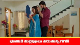 అని భూమి అడగ్గానే.. గగన్ మల్లెపూలు తీసుకుని భూమి తలలో పెడతానంటాడు. ఇంతలో భూమి అద్దం తీసుకుని చూసుకుంటూ గగన్ ముందు నిలబడుతుంది. గగన్ పూలు పెట్టి కత్తెర తీసుకుంటాడు. అద్దంలో కత్తెర చూస్తుంది భూమి.