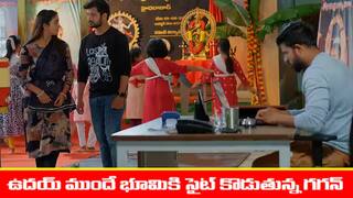 ఉదయ్ తాను శరత్ చంద్రతో తీసుకొచ్చిన రికమండేషన్ లెటర్ గగన్కు ఇస్తూ నాకు ఈ స్కూల్లో అడ్మిషన్ కావాలి అంటాడు. లెటర్ చూసిన గగన్ కోపంతో చింపి పడేస్తాడు. దీంతో ఉదయ్ కోపంగా గగన్ను తిడతాడు. నువ్విలా ఉన్నావు కాబ్టటే మీ అమ్మకు అంత అవమానం చేశారు అంటాడు. దీంతో ఏంటా అవమానం అంటూ గగన్ మరింత కోపంగా ఉదయ్ పీక పట్టుకుంటాడు. భూమిని చెప్పమని అడుగుతాడు. అయితే శరత్ చంద్ర ఇంట్లో శారదకు జరిగిన అవమానం చెప్తుంది భూమి. దీంతో గగన్ కోపంగా శరత్ చంద్ర ఇంటికి బయలుదేరుతాడు.