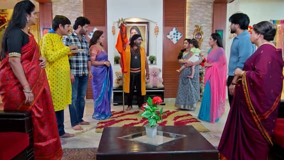 అఖండ స్వామి హాల్ల్ మెట్టకు ముందు కూర్చొని కళ్లు మూసుకొని ఉంటారు. తిలోత్తమ అందరితో దివ్య దృష్టితో ఇంటి భవిష్యత్ చూస్తున్నారని చెప్తుంది. ఇంతలో గాయత్రీ పాప వచ్చి ఆఖండ స్వామి ఎదురుగా కూర్చొంటుంది. నయని వద్దని పాపని లేవమని చెప్తే అఖండ స్వామి ఉండమని చెప్తారు. అఖండ స్వామి అరచేతిలో విభూది పట్టుకుంటారు. అది ఆత్మ ఆవహించిన దేహం మీద పడుతుందని చెప్తారు. నయని, విక్రాంత్ వాళ్లు కంగారు పడతారు. బామ్మ నయనితో కంగారు పడొద్దని చెప్తుంది. అలా చెప్పారేంటి అంటే పాప ముఖం మీద పడుతుందని నయని కంగారు పడుతుందని అలా చెప్పానని అంటుంది. ఇక అఖండ స్వామి మనసులో మంత్రం చెప్తానని అప్పుడు ఆత్మ ఎవరి దేహంలో ఉందో ఆ శరీరం మీద విభూది పడుతుందని అంటారు. పాప మీద పడితే గాయత్రీ దేవి ఆత్మ వస్తుందని ఎవరూ ఏం అన్నా ఊరుకోనని అంటుంది.